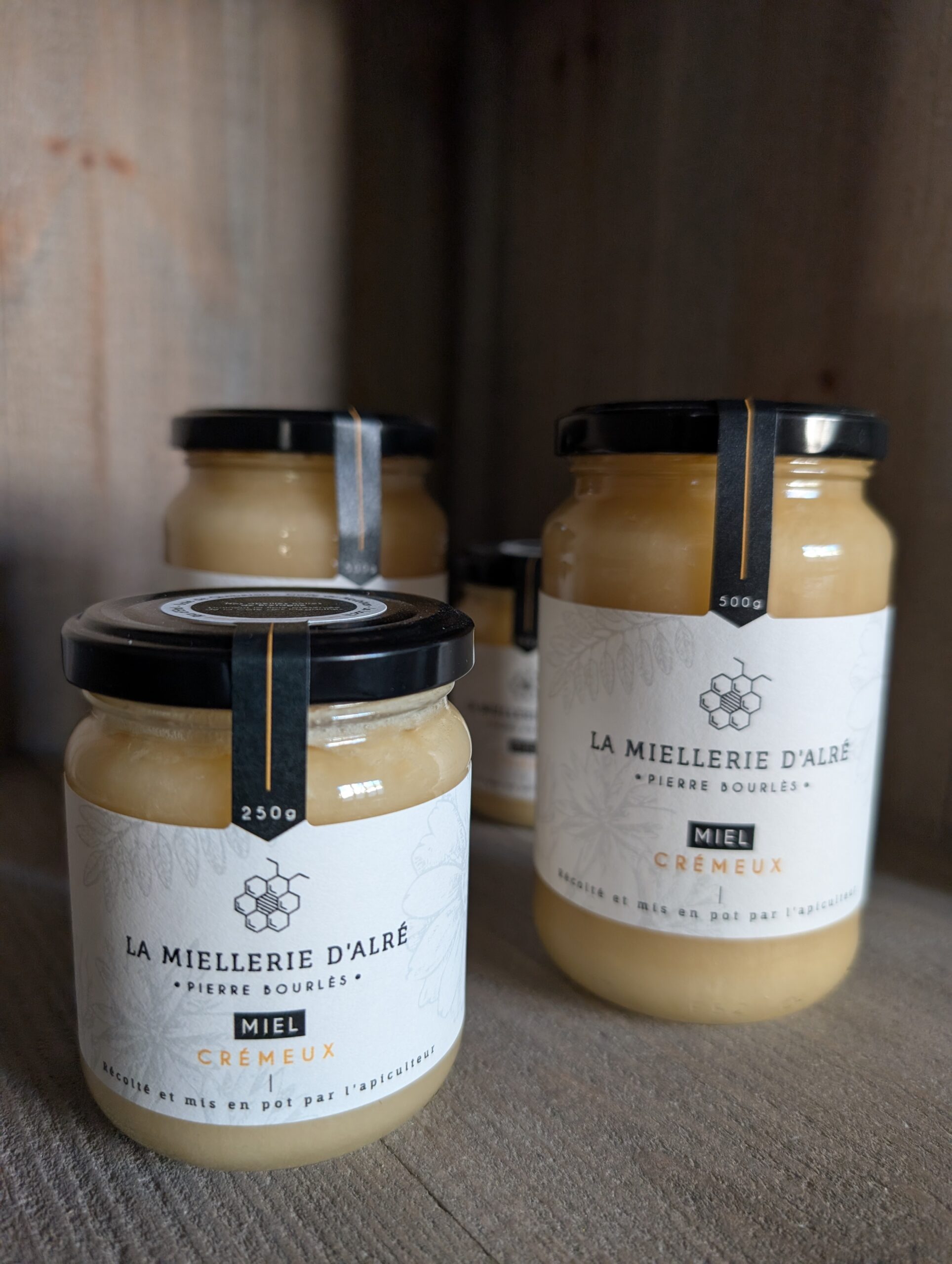 Ce sont les floraisons précoces de la côte sud de la Bretagne qui donnent à ce Miel de fleurs de printemps son parfum frais et sa robe dorée. Issu des premières miellées de printemps avec le colza, le prunelier, le saule marsault, le merisier ou le pommier, il est rendu crémeux par brassage lent à froid, et offre aux gourmands le très attendu miel crémeux de LA MIELLERIE D’ALRÉ !